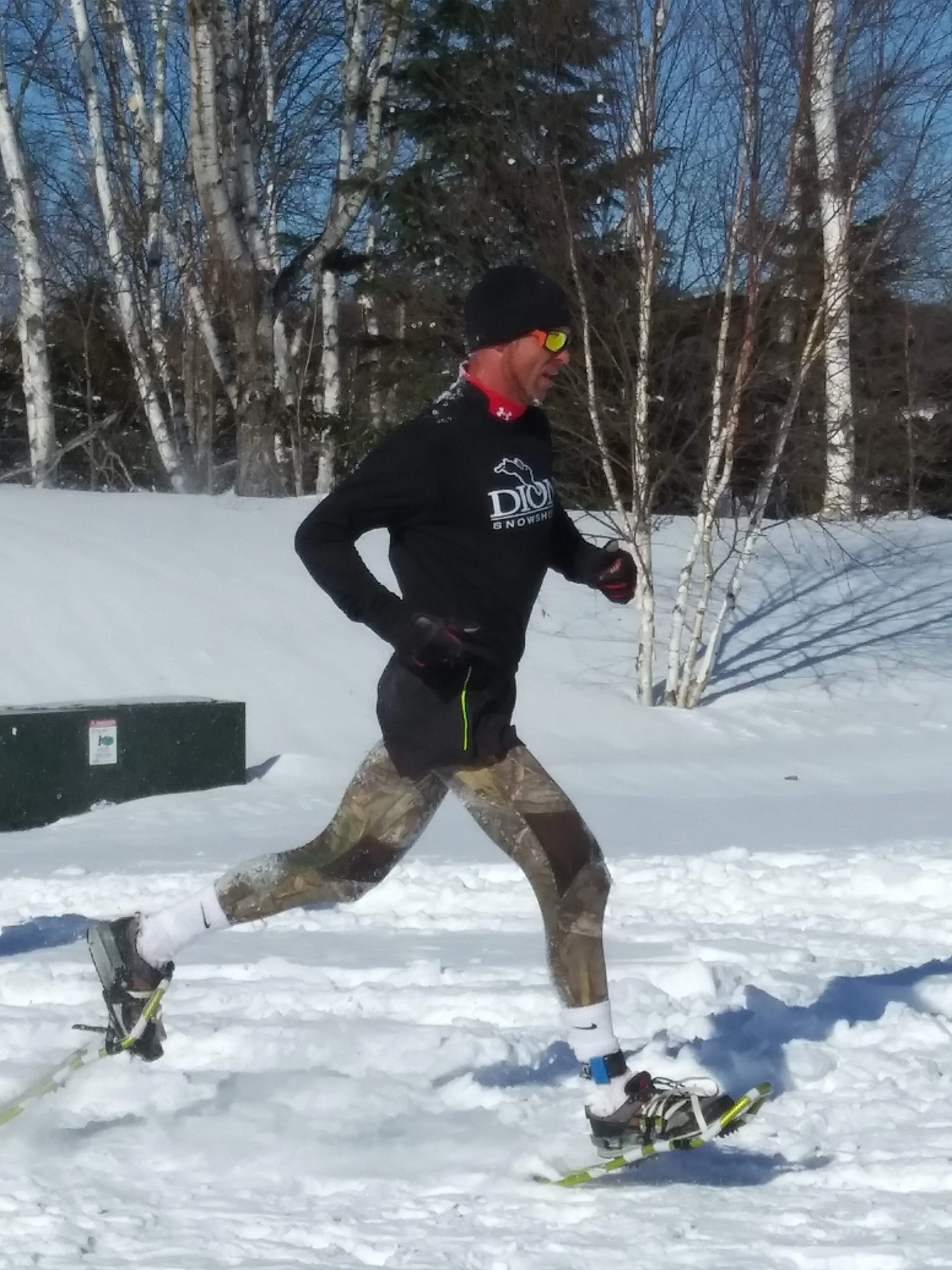 Bernie got into snowshoe racing a few years to augment his winter training and to avoid injury.